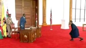 “As a former Attorney General, I can confidently say: I would never have done this,” Justin Muturi reacted, adding “I cannot, and will not, worship any human being. This image of AG Dorcas Oduor nearly kneeling before the President is disturbing. It confirms what I once said, the Cabinet operates under fear.”