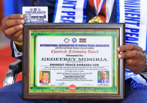 In a major boost for Kenya’s humanitarian and diplomatic profile, Nairobi County Chief Officer for Citizen Engagement and Customer Service, Geoffrey Mosiria, has been bestowed the prestigious title of International Eminent Peace Ambassador by the International Association of World Peace Advocates (IAWPA).